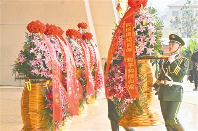 盛世礼炮。全体肃立。鸣炮21响。