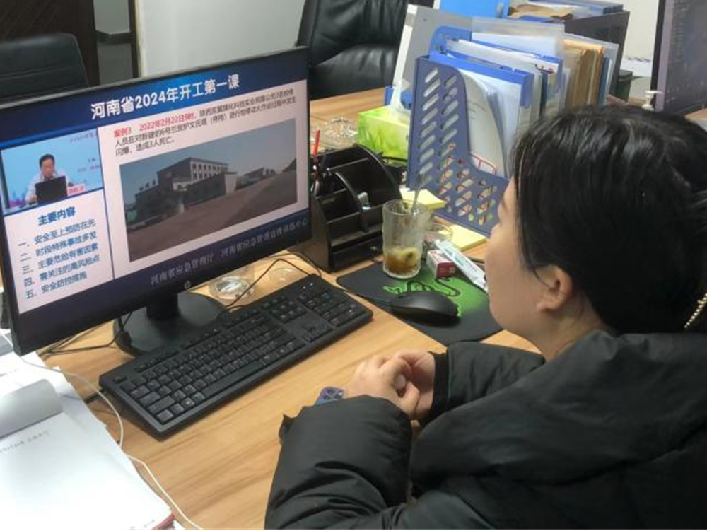 为认真贯彻习近平总书记关于安全生产重要指示精神,全面落实党中央、国务院和省委、省政府决策部署,切实做好春节后复工复产企业的安全生产工作,有效杜绝准备不充分、员工精神状态不佳、设备故障运行、安全管理不到位等问题引发的生产安全事故,确保复工复产安全, 全面恢复现场施工,保证项目施工进度,压实项目、监理、总分包管理责任。建投集团2月28日上午按照省、市安委会及城发集团统一要求,组织控股公司、项目部留守人员及施工、监理单位共计129人统一收看“河南省 2024 年开工第一课讲安全”专题讲座直播和安全生产责任在肩安全生产警示教育片。