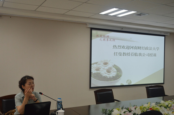 邀请河南财经政法大学教授任曼女士开展了商务礼仪培训活动。培训会由监事会主席付立文同志主持,爱游戏手机入口官网-爱游戏(中国)
