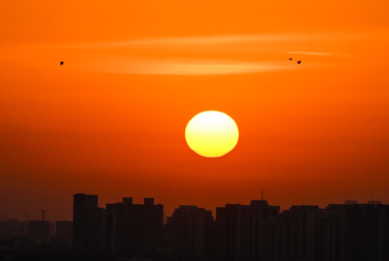 2025年1月1日在北京市区拍摄的日出景象。新华社记者 陈晔华 摄