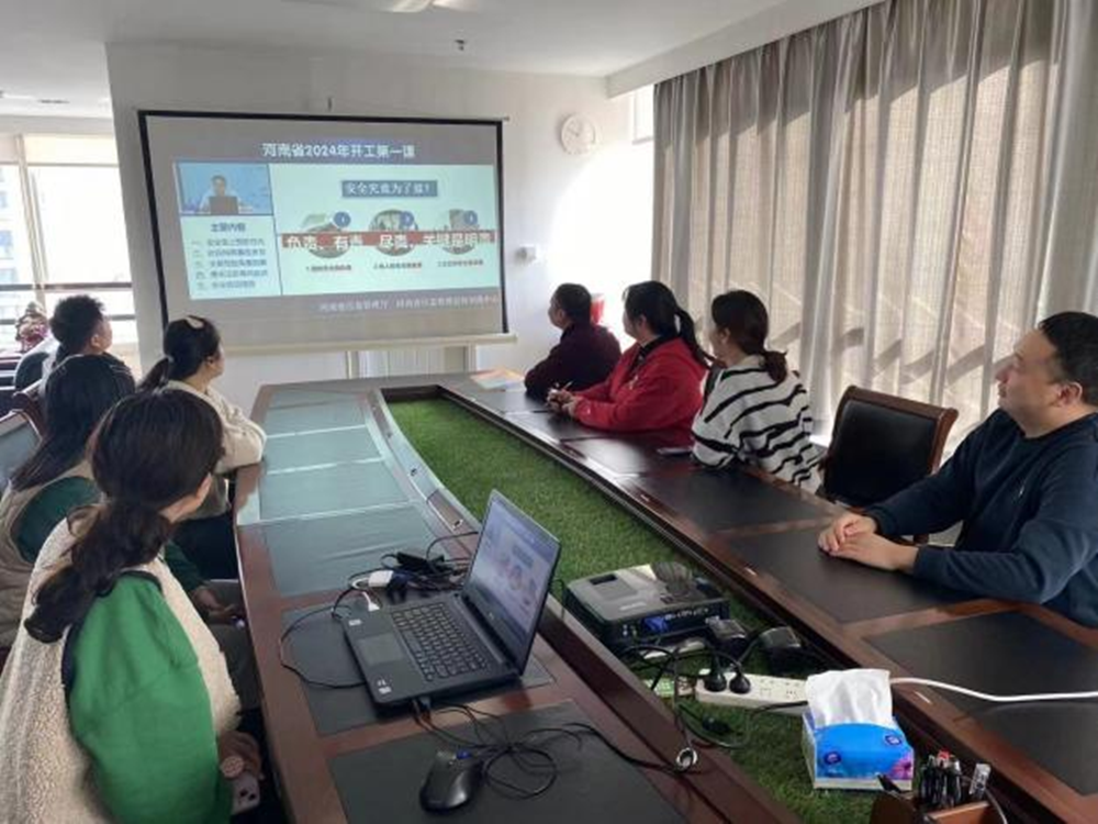 为认真贯彻习近平总书记关于安全生产重要指示精神,全面落实党中央、国务院和省委、省政府决策部署,切实做好春节后复工复产企业的安全生产工作,有效杜绝准备不充分、员工精神状态不佳、设备故障运行、安全管理不到位等问题引发的生产安全事故,确保复工复产安全, 全面恢复现场施工,保证项目施工进度,压实项目、监理、总分包管理责任。建投集团2月28日上午按照省、市安委会及城发集团统一要求,组织控股公司、项目部留守人员及施工、监理单位共计129人统一收看“河南省 2024 年开工第一课讲安全”专题讲座直播和安全生产责任在肩安全生产警示教育片。