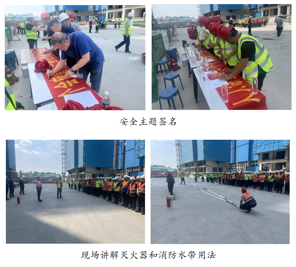 活动期间,大家积极参与安全主题签名和主题宣誓,讲解员现场讲解消防水带和灭火器的用法,解答安全生产相关知识,并开展了消防实战演练。爱游戏手机入口官网-爱游戏(中国) 分管安全生产的总经理助理黄志澎作重要讲话,强调了安全生产的重要性,要求各单位扎实做好今年防汛工作,并为一线工人发放防暑降温药品和安全知识手册200套。
